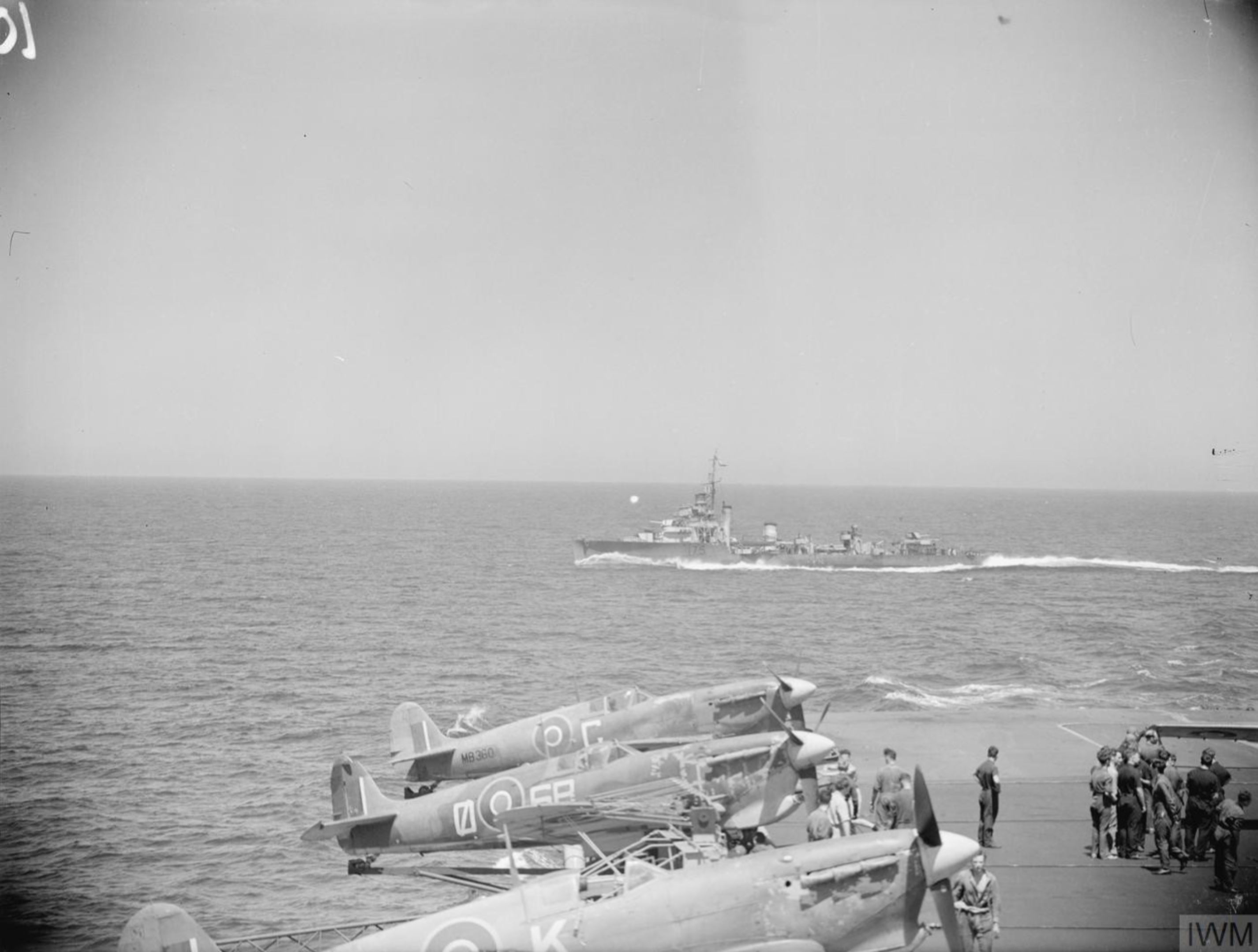 Fleet Air Arm 885NAS Seafire VbTrop 06B aboard HMS Formidable and destroyer HMS Venomous IWM A17080