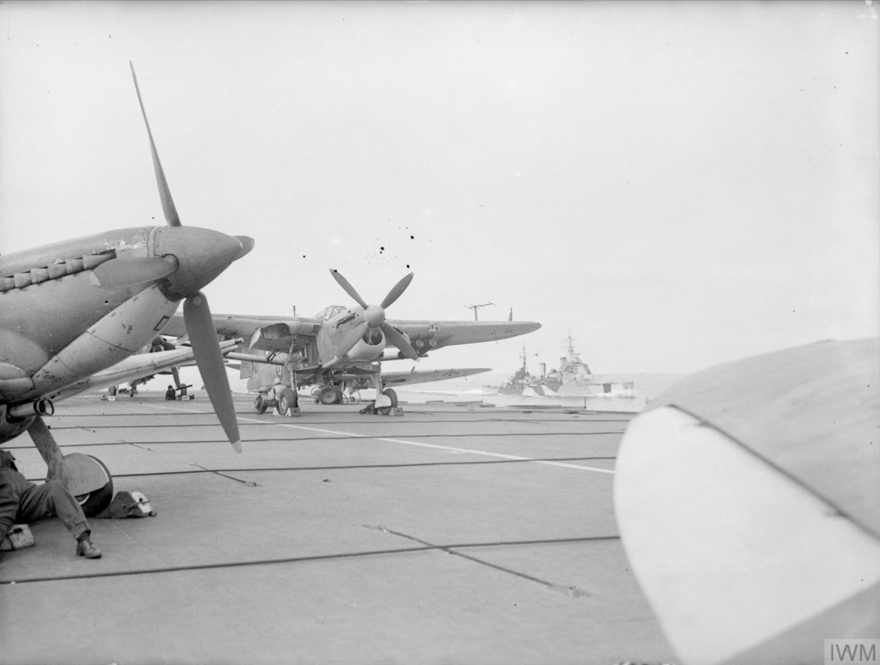 Fleet Air Arm 887NAS n 894NAS Seafires with 820NAS n 826NAS Barracudas aboard HMS Indefatigable Aug 1944-IWM A25084