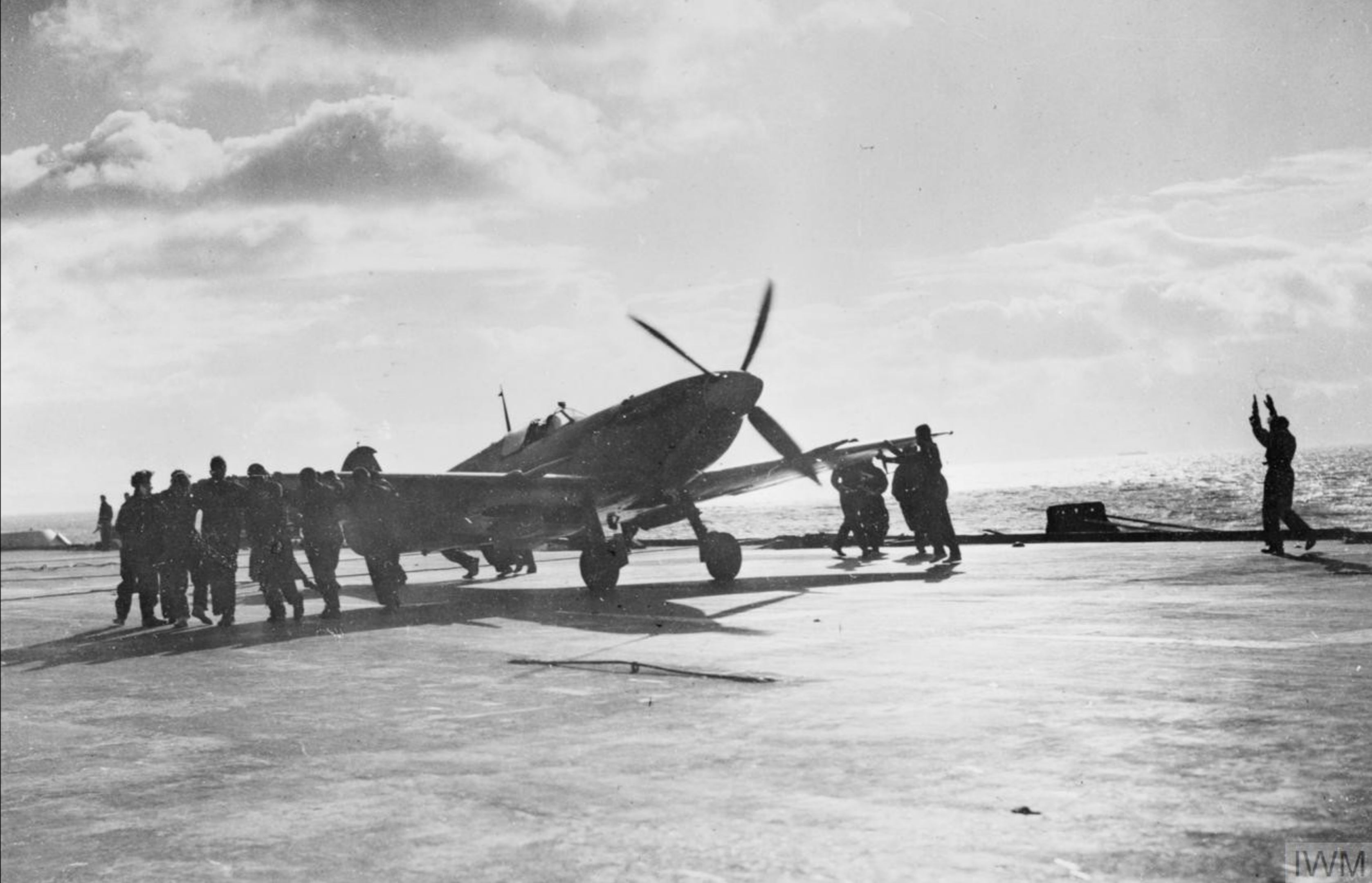 Fleet Air Arm 894NAS Seafire landing aboard HMS Illustrious Clyde Scotland Feb 1943-IWM A20645