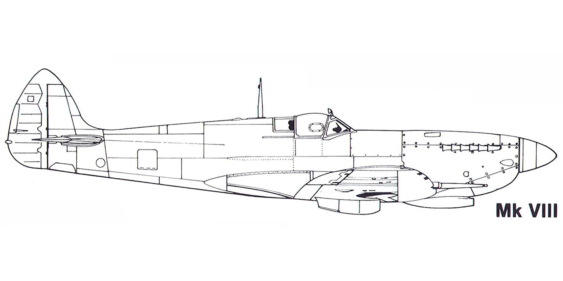 Aircraft profile Spitfire MkVIII blue print scale drawing 0A