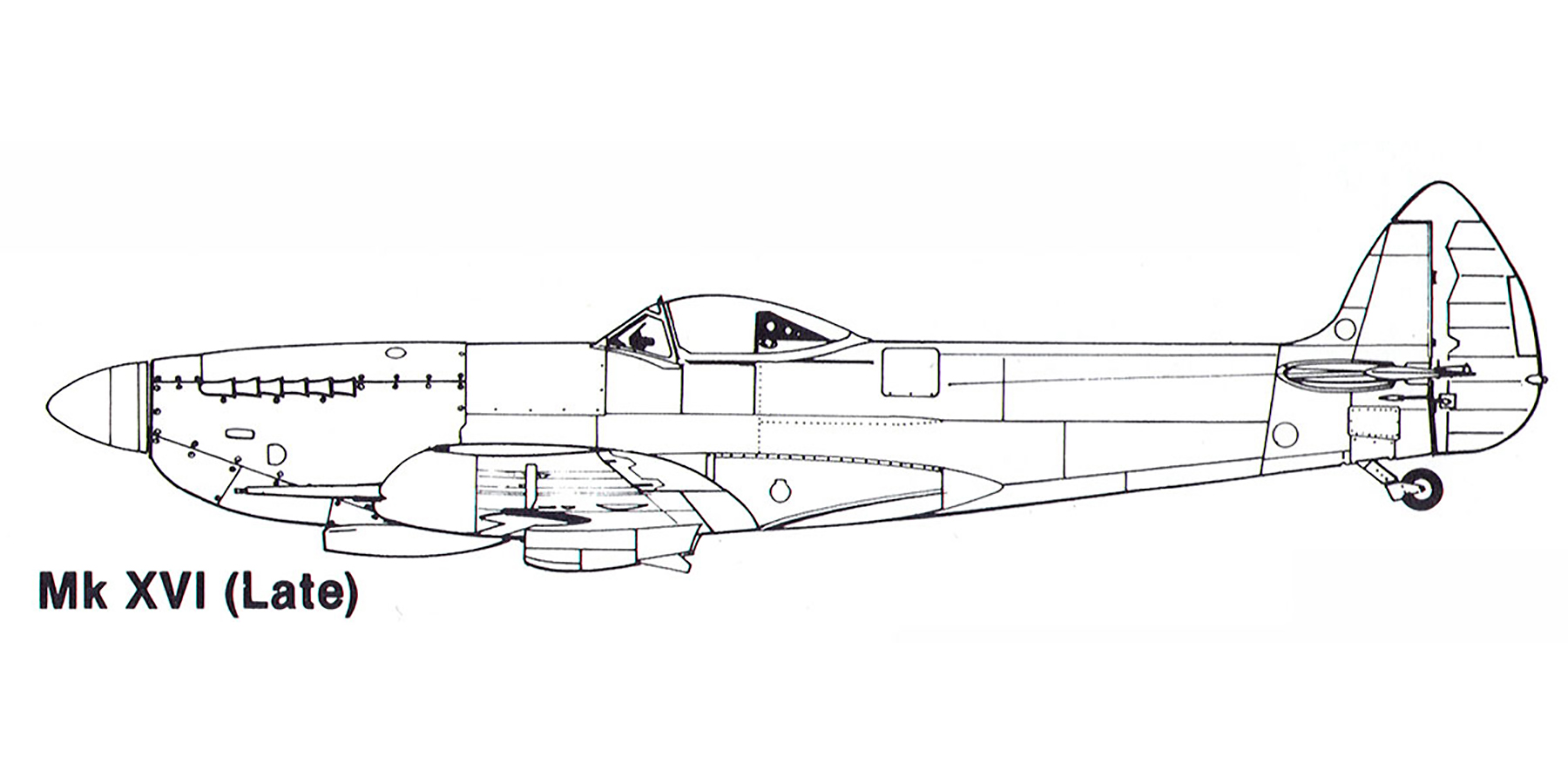 Aircraft profile Spitfire XVI late blue print scale drawing 0A