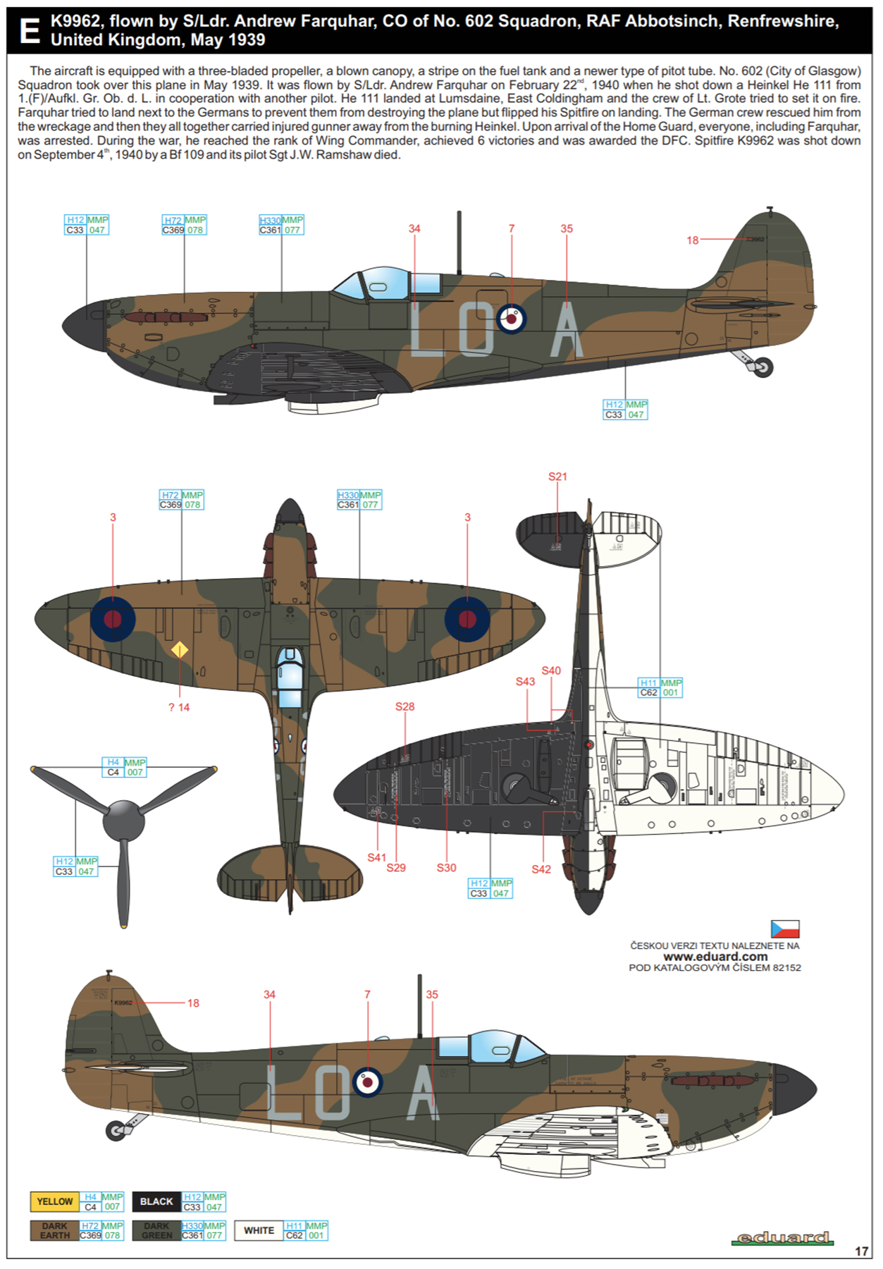 Spitfire MkI RAF 602Sqn LOA SLdr Andrew Farquhar CO K9962 Abbotsinch Renfrewshire May 1939-Eduard 0B