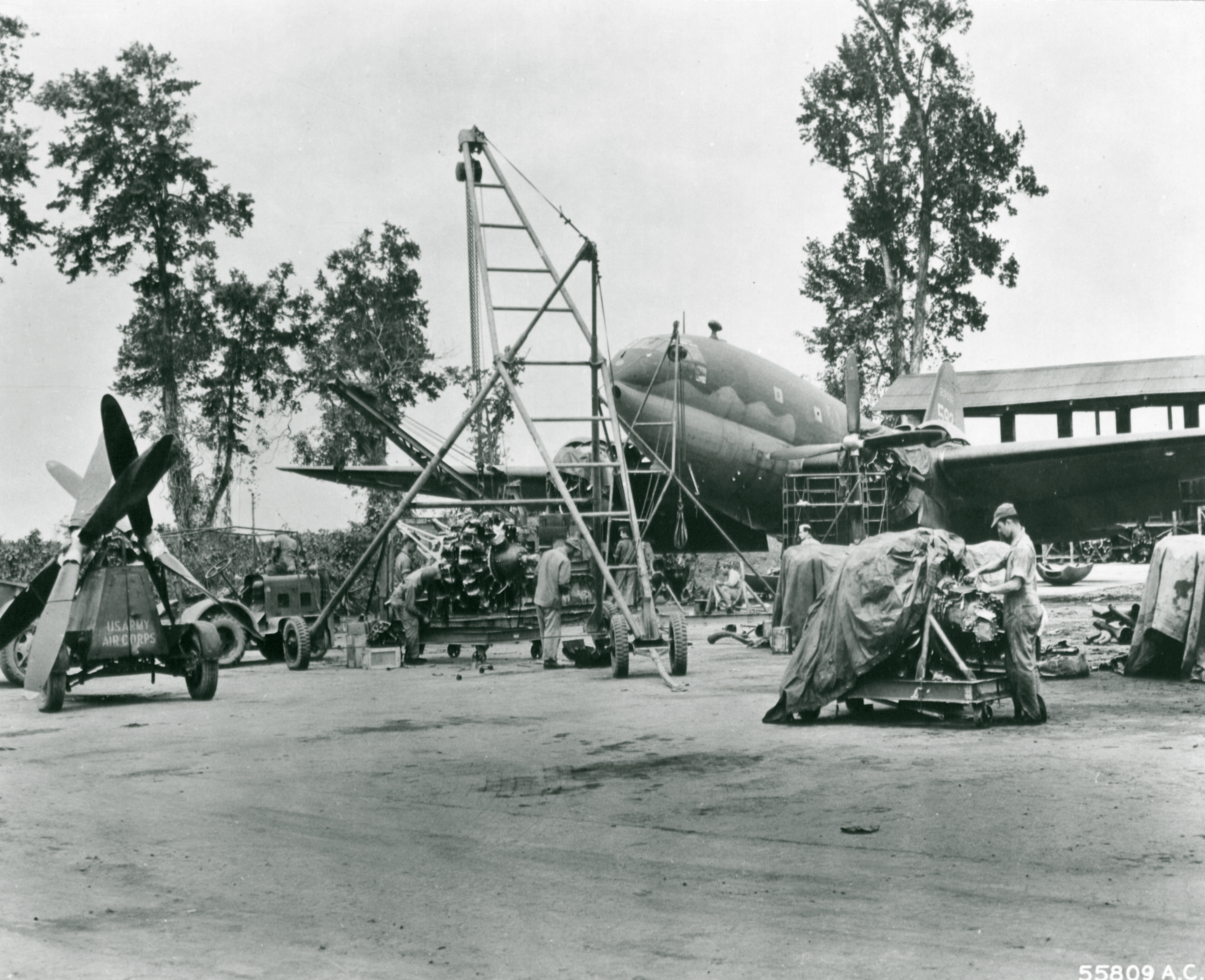 44-77305 Curtiss C 46D Commando ATC under going engine change at Chabua India 19th Jan 1945-NA062