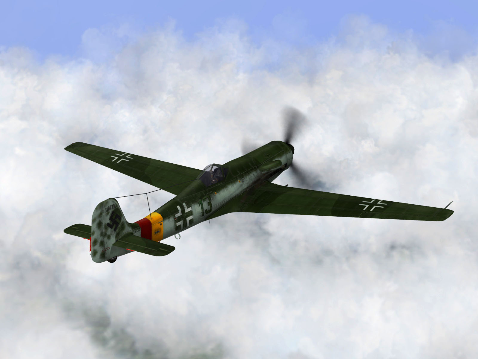 IL2 EM Ta 152H1 Stab JG301 Green 13 on patrol over storm clouds Germany V01