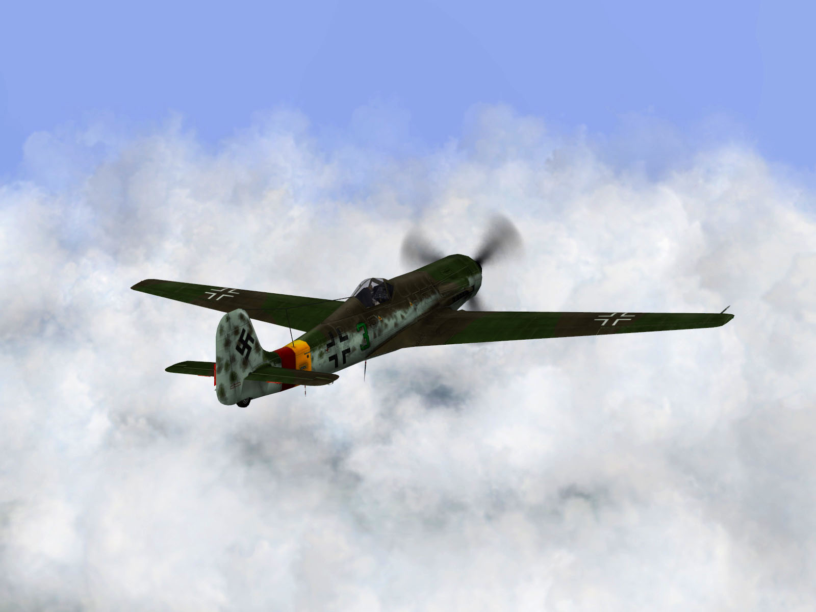 IL2 EM Ta 152H1 Stab JG301 Green 3 on patrol over storm clouds Germany V02