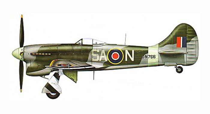 The Hawker Tempest was a British fighter aircraft primarily used by the Royal Air Force (RAF) in the Second World War. The Tempest was an improved derivative of the Hawker Typhoon, the type originally being known as the Typhoon II, which was intended to address the Typhoon's unexpected fall-off of performance at high altitude by replacing its wing with a thinner laminar flow design. Having diverged considerably from the Typhoon, it was chosen to rename the aircraft Tempest. The Tempest emerged as one of the most powerful fighters of the World War II and was the fastest propeller-driven aircraft of the war at low altitude.