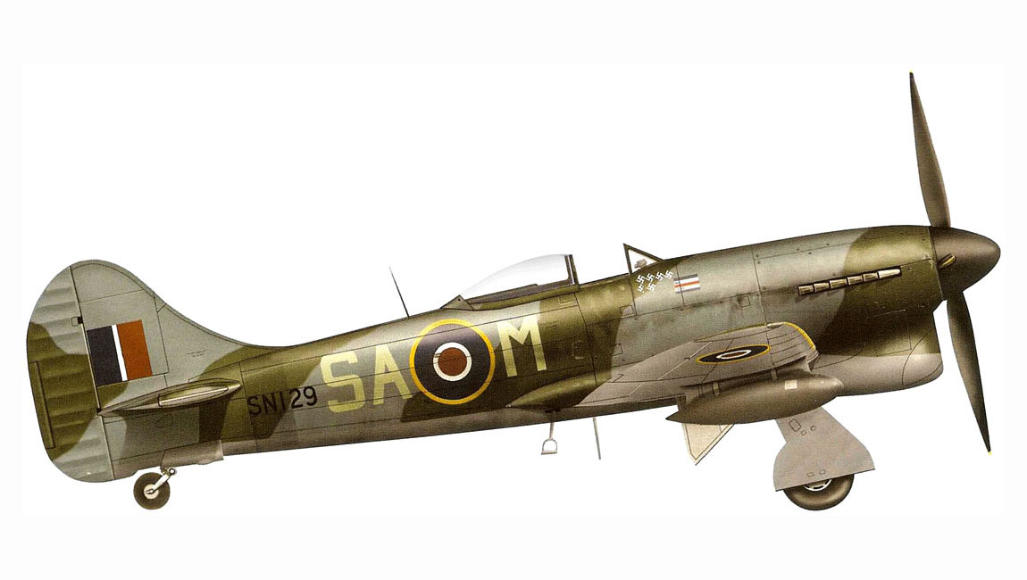 Artwork Profile Tempest MkV RAF 486Sqn SA M Jimmy Sheddan SN129 Holland 1945-0A