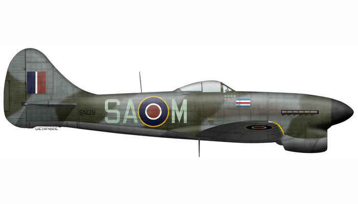 Artwork Profile Tempest MkV RAF 486Sqn SA M Jimmy Sheddan SN129 Holland 1945-0B