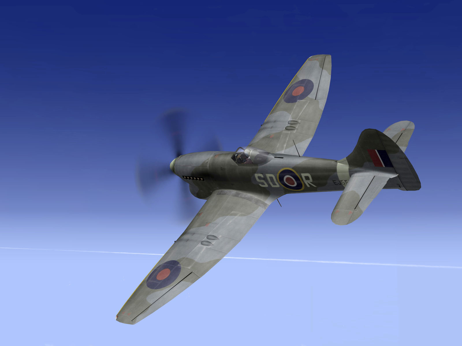 The Hawker Tempest was a British fighter aircraft primarily used by the Royal Air Force (RAF) in the Second World War. The Tempest was an improved derivative of the Hawker Typhoon, the type originally being known as the Typhoon II, which was intended to address the Typhoon's unexpected fall-off of performance at high altitude by replacing its wing with a thinner laminar flow design. Having diverged considerably from the Typhoon, it was chosen to rename the aircraft Tempest. The Tempest emerged as one of the most powerful fighters of the World War II and was the fastest propeller-driven aircraft of the war at low altitude.