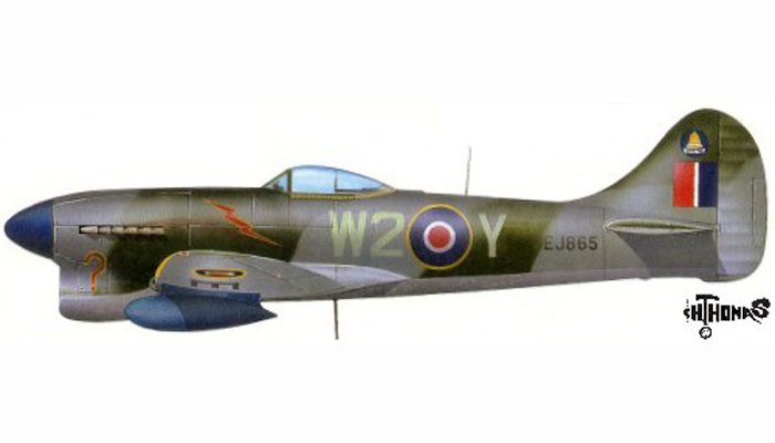 Artwork Profile Tempest MkV RAF 80Sqn W2 Y EJ865 Wunstorf Germany 1946 0B