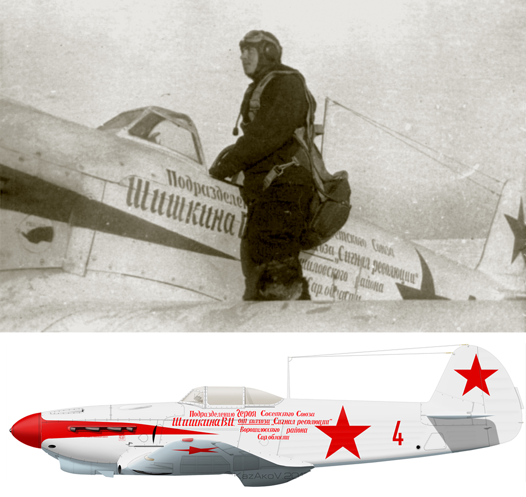 Yakovlev Yak 1B 55GvIAP 220IAD Red 4 collective farmers with cmdr MA Ivanov at Stalingrad 1942 0B