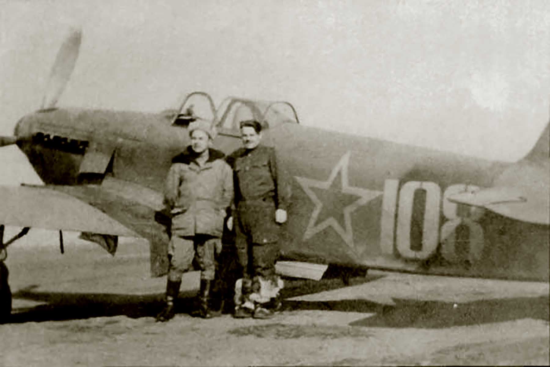 Yakovlev Yak 3 66GvIAD White 108 with V Obukhov and NA Zaitsev at Perleberg 1945 01