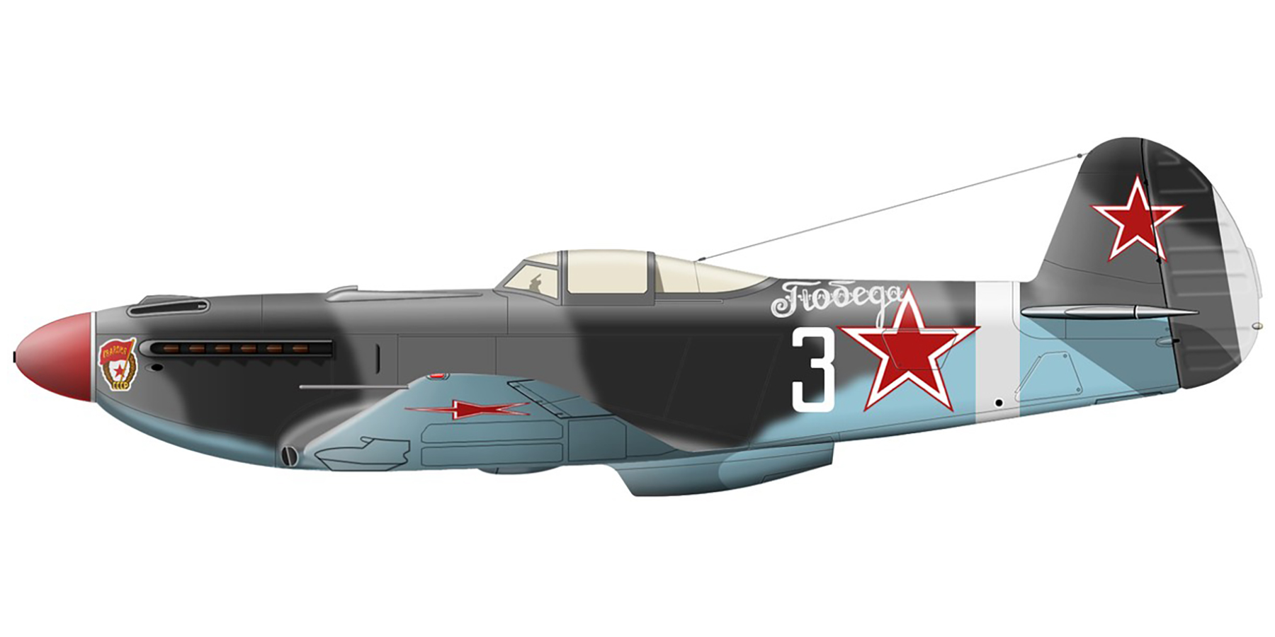 Yakovlev Yak 9U 152GvIAP 12GIAD White 3 slogan Pobeda with Yuri Movshevich Czechoslovakia 1945 0A