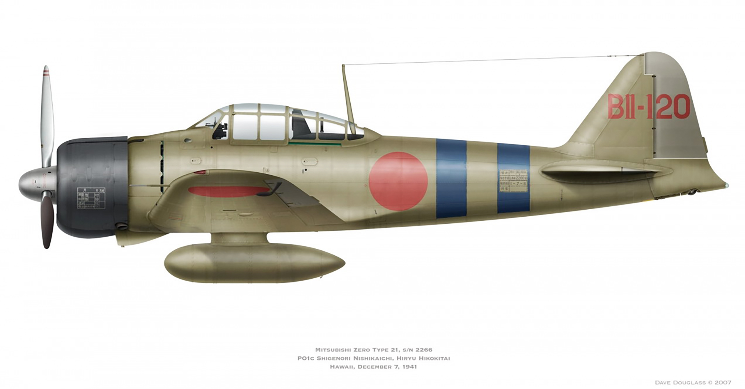 Mitsubishi A6M2 21 Zero JNAF 1st Koku Kantai BII 120 Shigenori Nishikaichi Hiryu 1941 0A