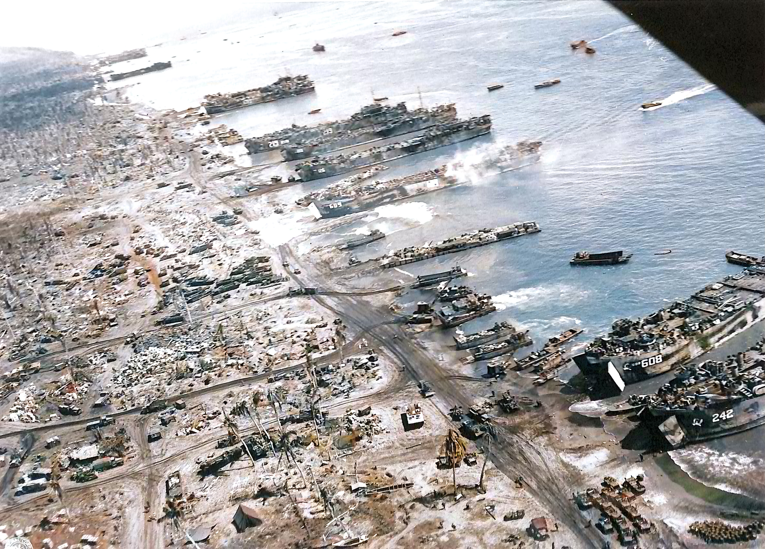 American troops unload supplies from LST's in Leyte Loyte Islnnd PI 22nd Oct 1944-01