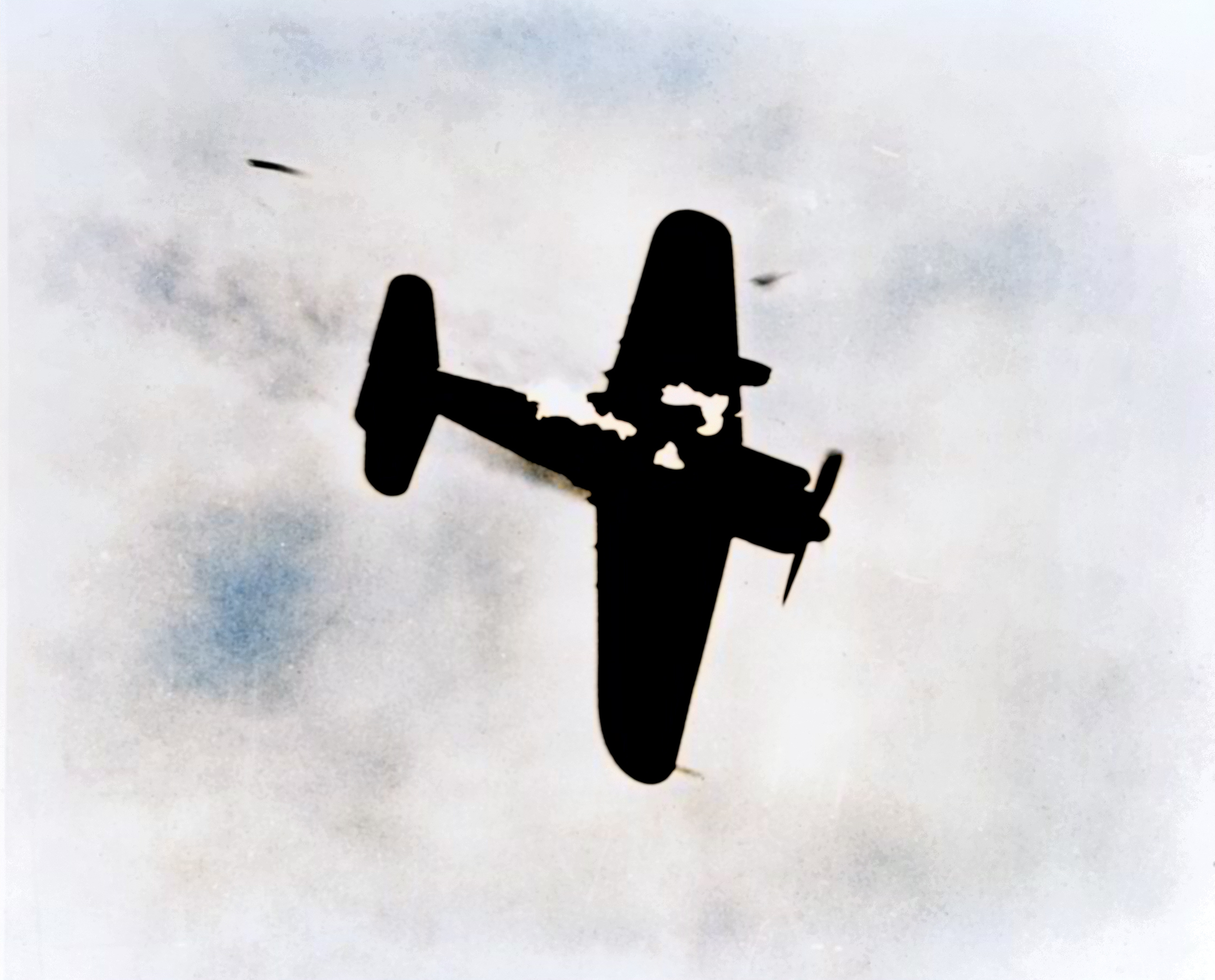 Japanese B6N2 Jill torpedo plane shot down by USS Monterey (CVL 26) off Truk circa 30th April 1944 80 G 366985