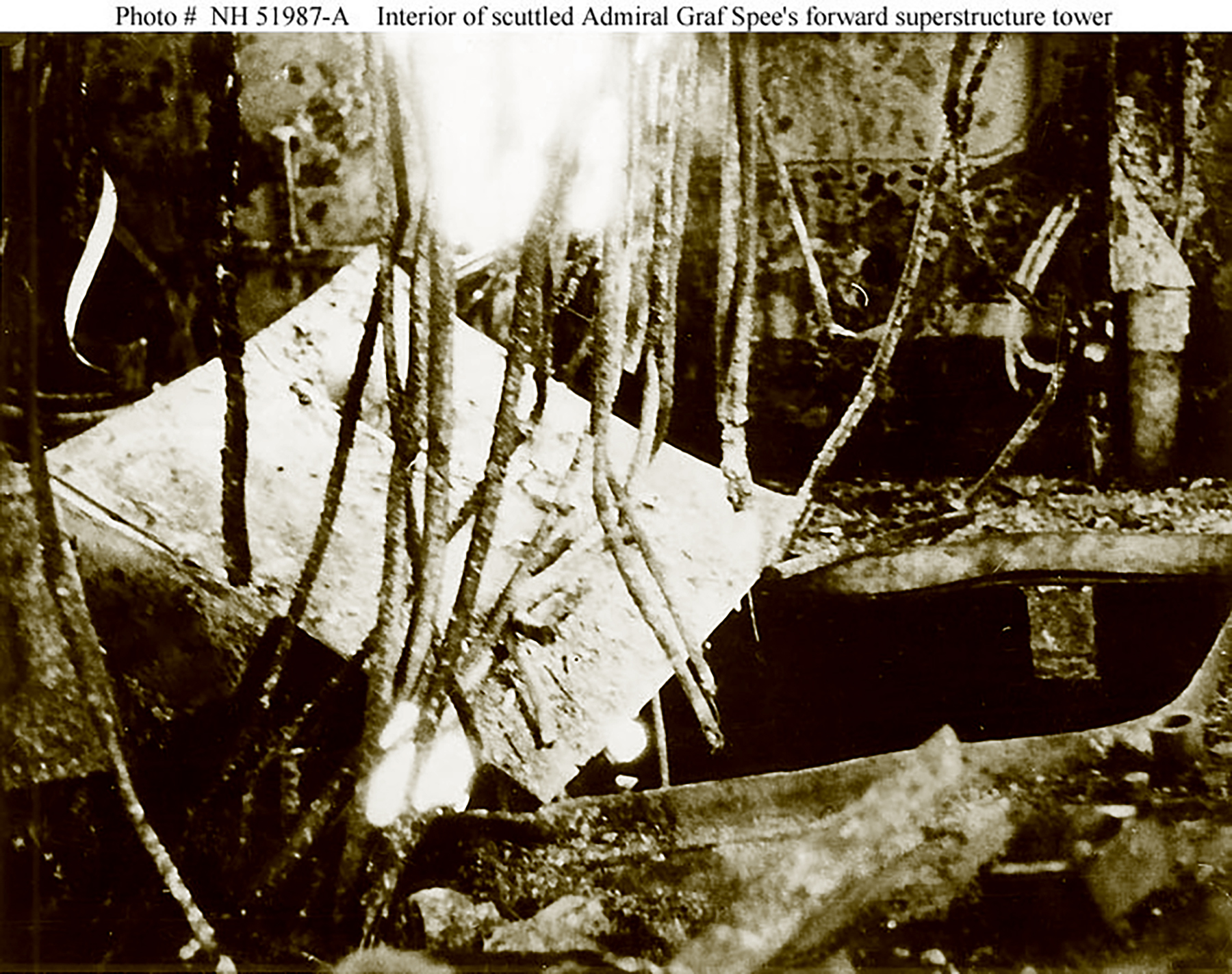 Admiral Graf Spee battle damage from RN heavy cruser Exeter battle of the River Plate NH51987 A