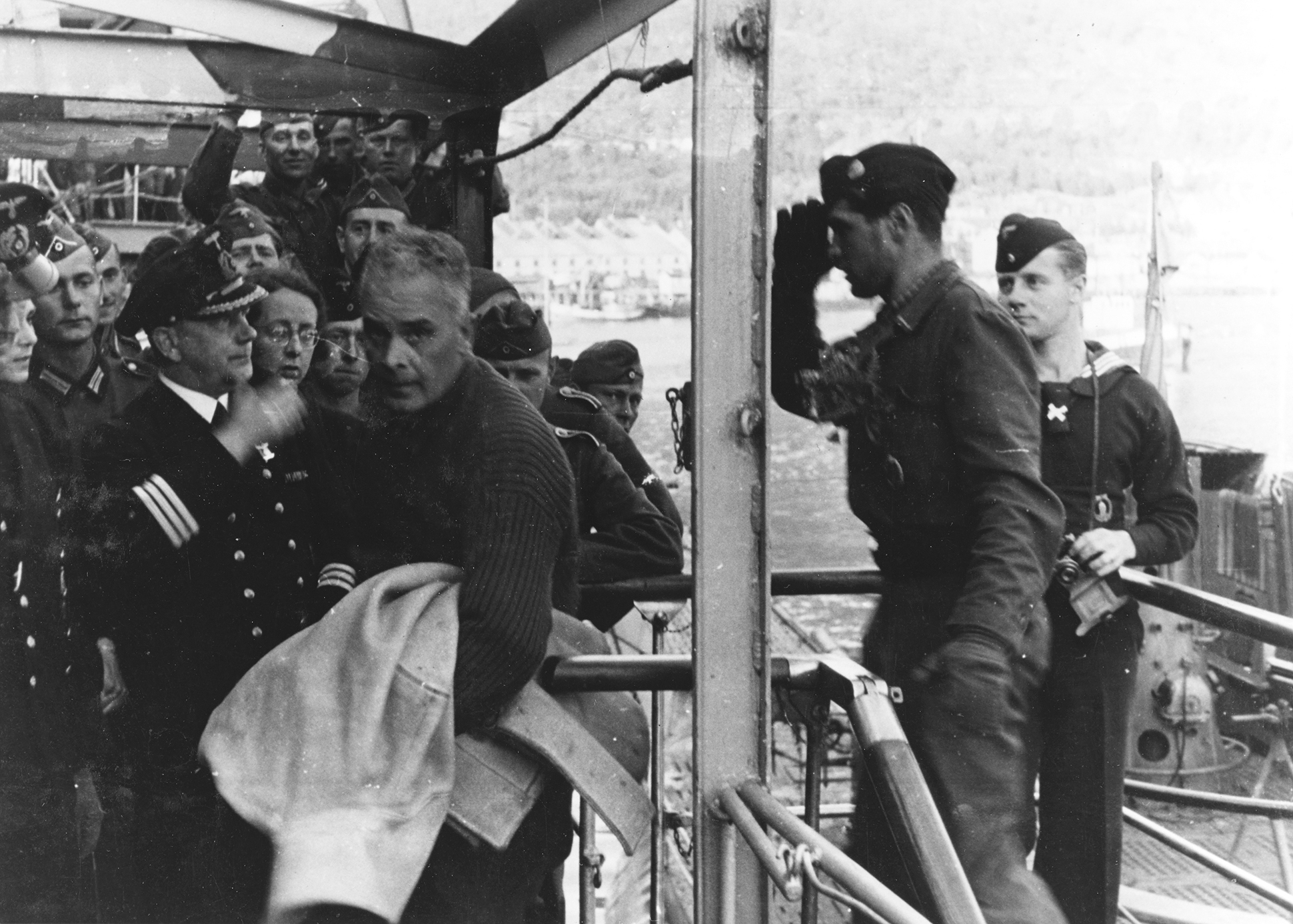 In April 1940, the German Navy was heavily involved in the invasion of Norway, where it suffered significant losses, which included the heavy cruiser Blücher sunk by artillery and torpedoes from Norwegian shore batteries at the Oscarsborg Fortress in the Oslofjord. Ten destroyers were lost in the Battles of Narvik (half of German destroyer strength at the time), and two light cruisers, the Königsberg which was bombed and sunk by Royal Navy aircraft in Bergen, and the Karlsruhe which was sunk off the coast of Kristiansand by a British submarine. The Kriegsmarine did in return sink some British warships during this campaign, including the aircraft carrier HMS Glorious.