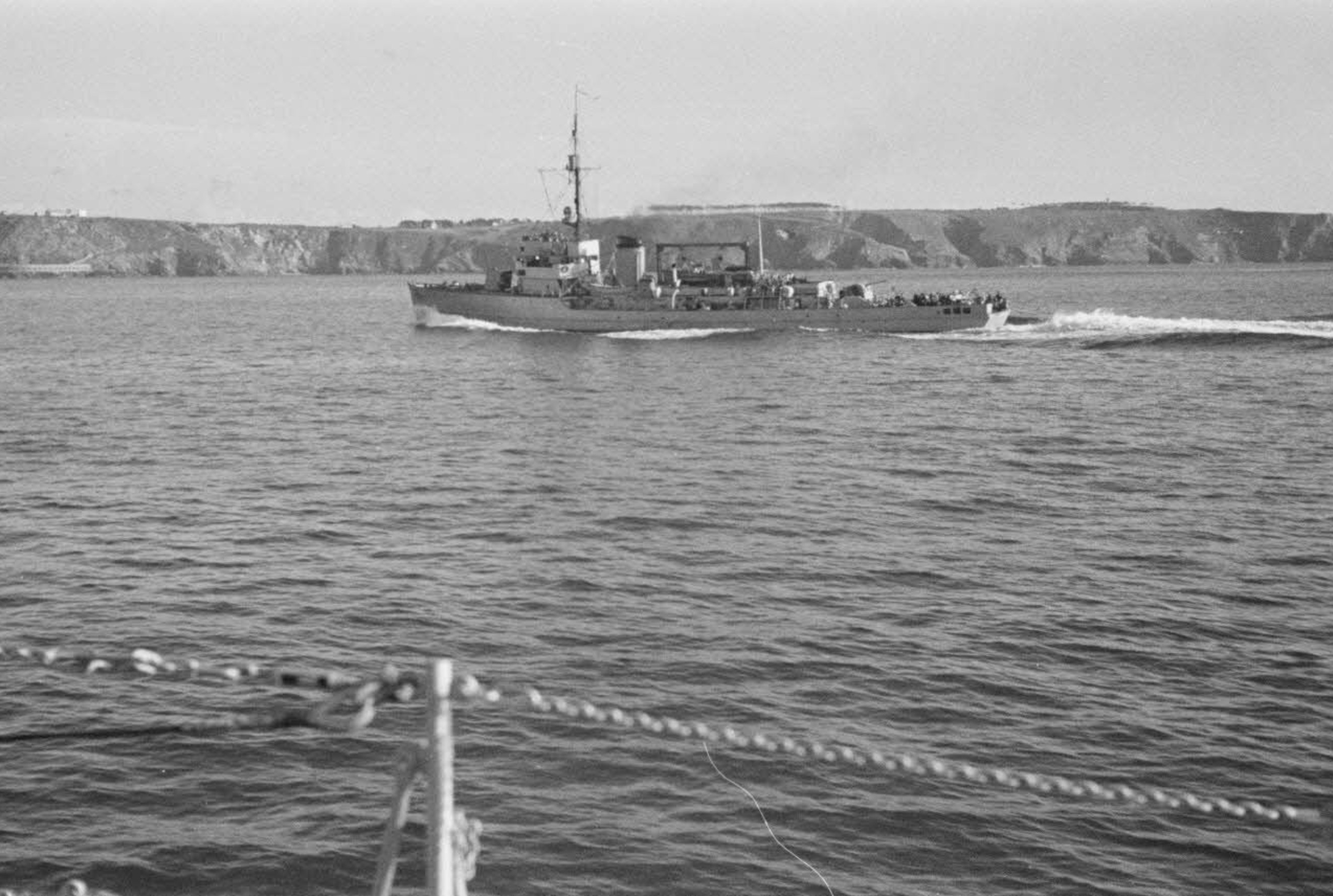 Flugsicherungsschiff Richthofen a 1935 minesweeper converted into a pilot rescue ship entering fishing port in Douarnenez Brittany France 07