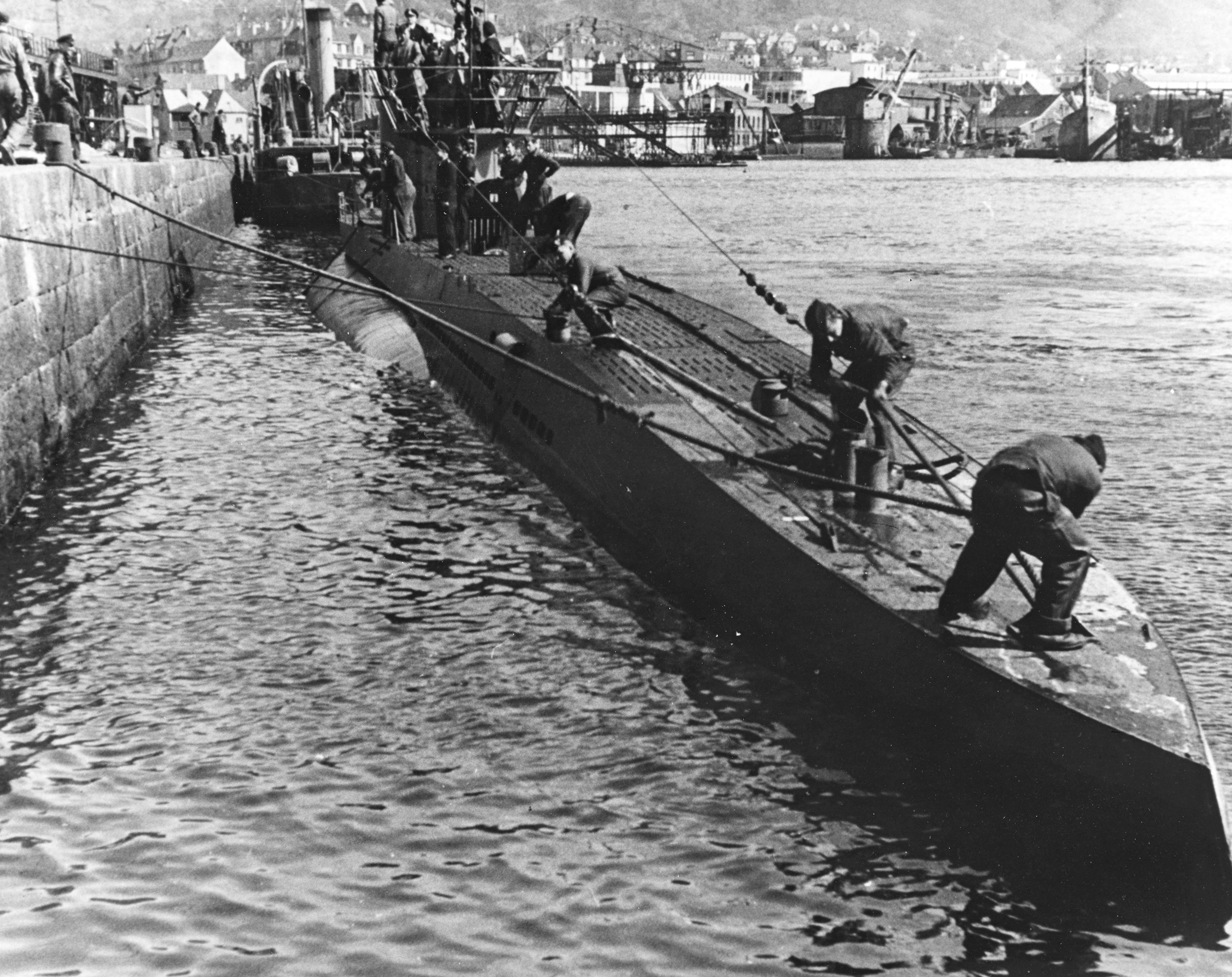 German U boat submarine U 252 ties up at Narvik Norway from Germany about June 1942-NH 71345