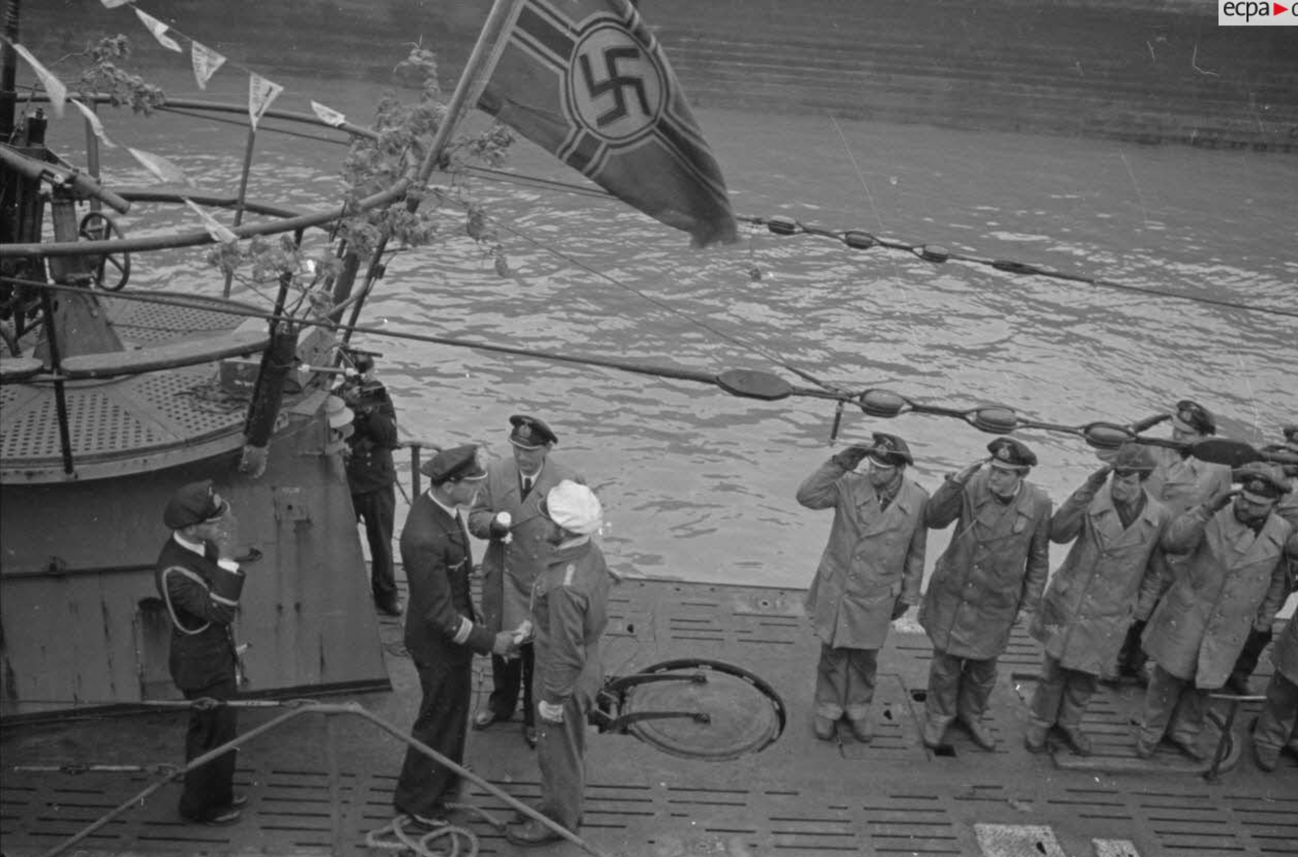 German U boat submarine U 552 returns from its cruise to Saint Nazaire France with Commander Erich Topp 01