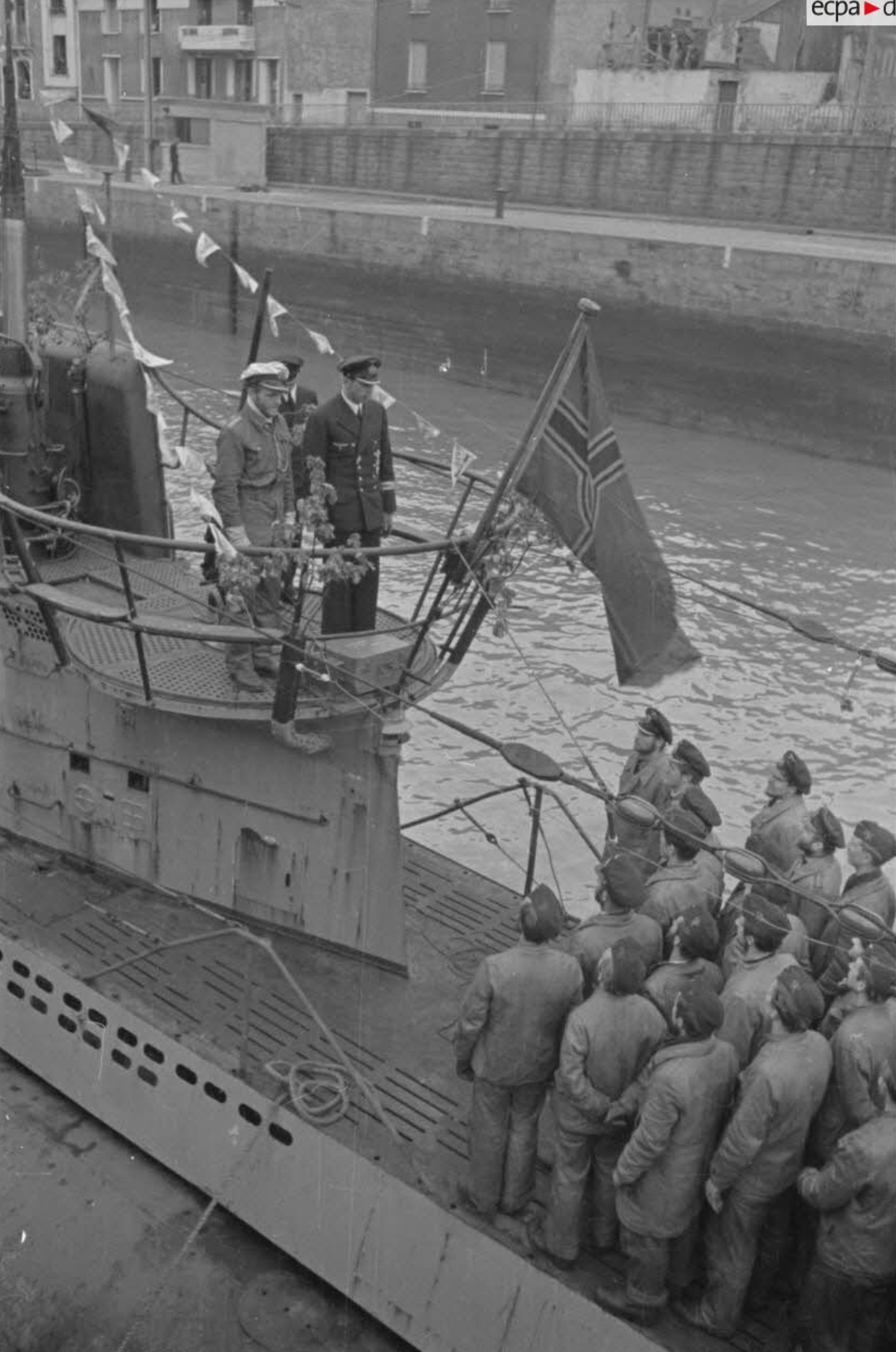 German U boat submarine U 552 returns from its cruise to Saint Nazaire France with Commander Erich Topp 04