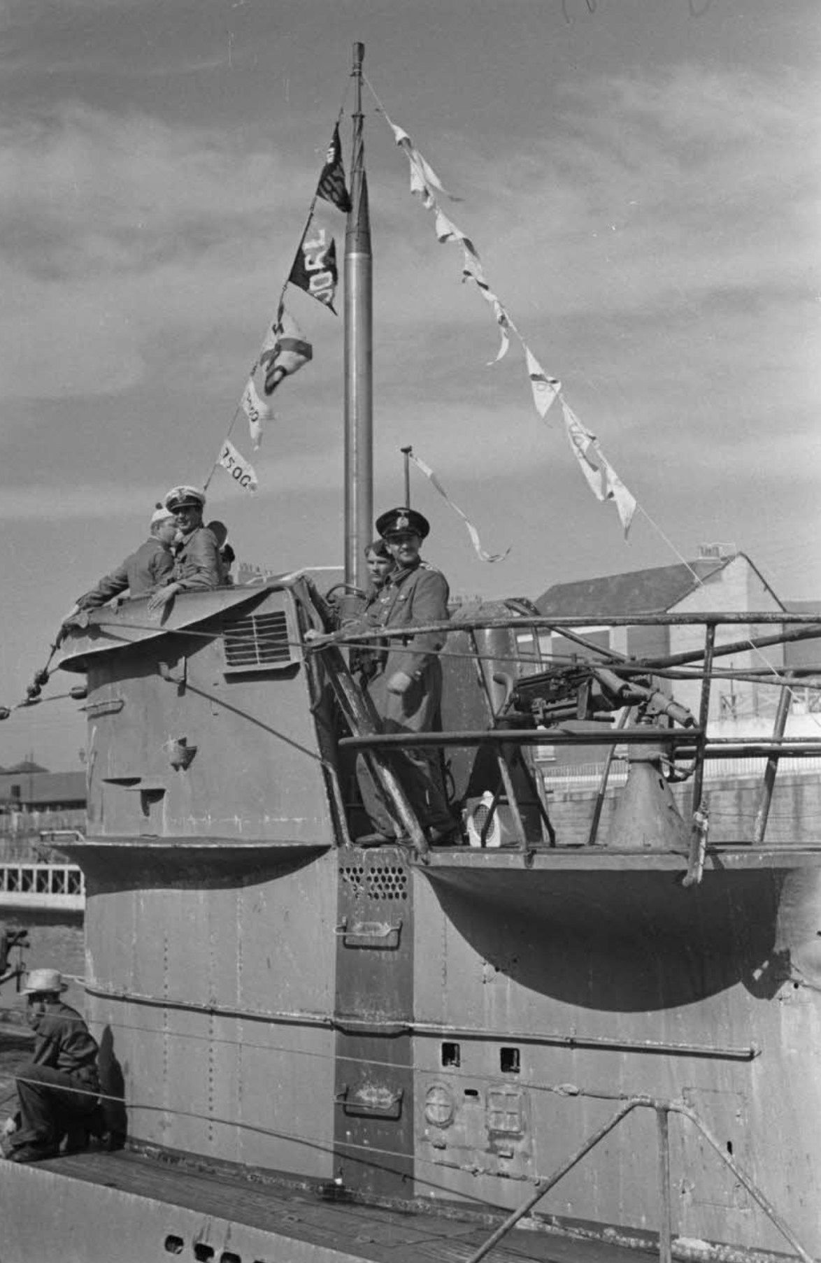 German U boat submarine U 69 insignia (a laughing cow) returns to Saint Nazaire with Commander Jost Metzler 8th July 1941 01