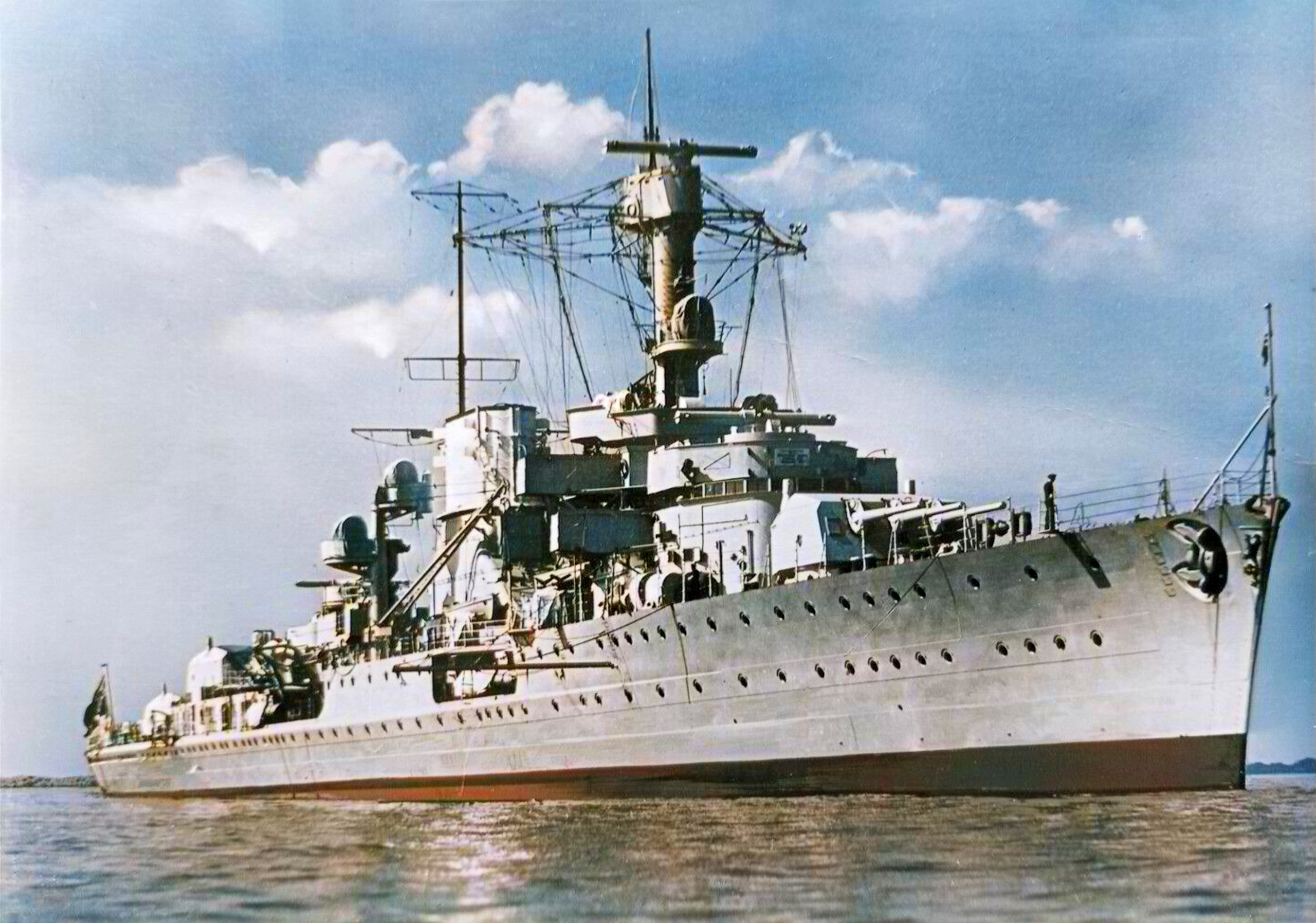 In 1941 one of the four modern German battleships, Bismarck sank HMS Hood while breaking out into the Atlantic for commerce raiding. Bismarck was in turn hunted down by much superior British forces after being crippled by an air-launched torpedo. She was subsequently scuttled after being rendered a burning wreck by two British battleships.