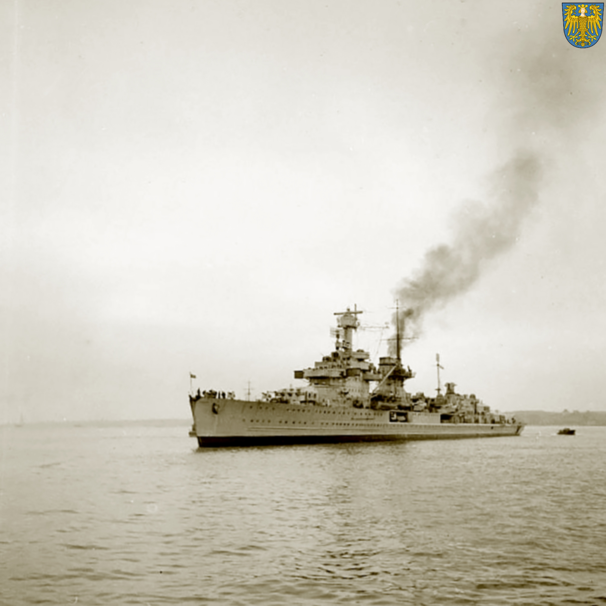 German light cruiser Nurnberg in Kiel in 1946 after being ceded to the Soviet Union