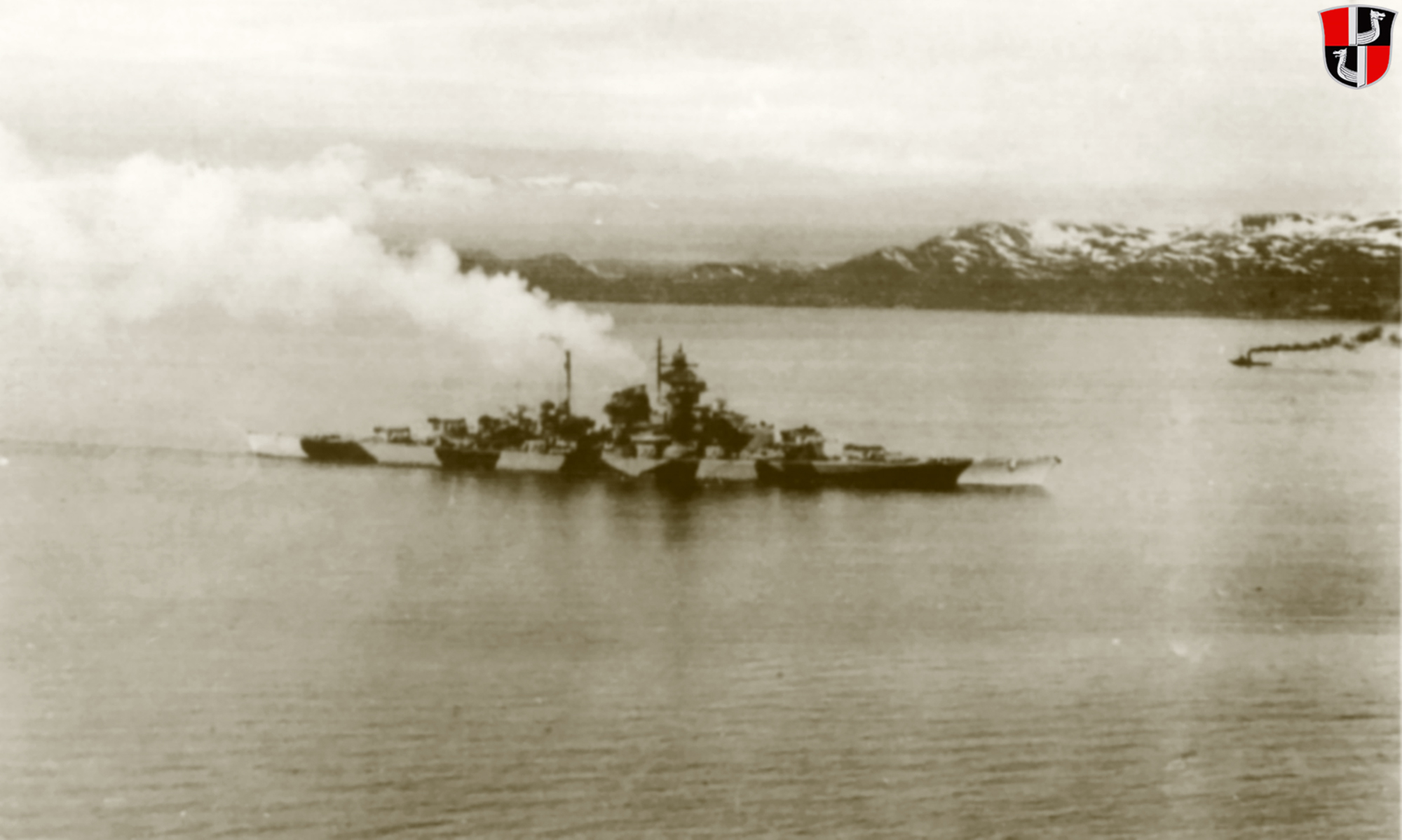 Kriegsmarine battleship KMS Tirpitz starboard side at sea Norway 1943-Luft Seaplanes P36a