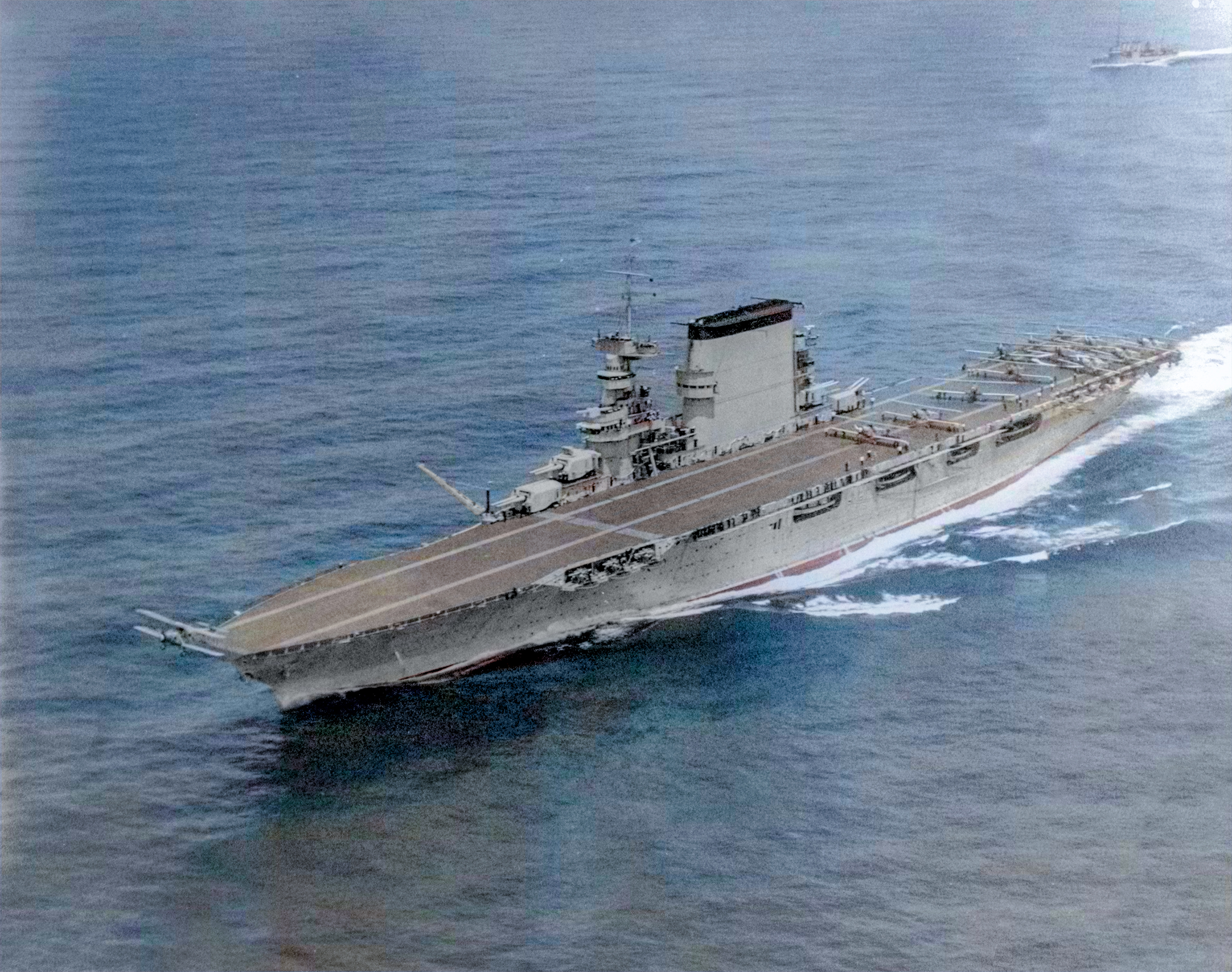 The U.S. Navy grew tremendously as the United States was faced with a two-front war on the seas. It achieved notable acclaim in the Pacific Theater, where it was instrumental to the Americans' successful 'island hopping' campaign.[4] The U.S. Navy fought six great battles with the Imperial Japanese Navy (IJN): the Attack on Pearl Harbor, Battle of the Coral Sea, the Battle of Midway, the Battle of the Philippine Sea, the Battle of Leyte Gulf, and the Battle of Okinawa. By war's end in 1945, the United States Navy had added nearly 1,200 major combatant ships, including ninety-nine aircraft carriers, eight 'fast' battleships, and ten prewar 'old' battleships totaling over 70% of the world's total numbers and total tonnage of naval vessels of 1,000 tons or greater.